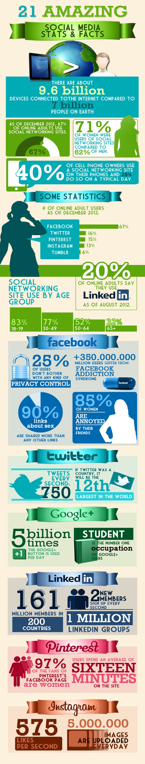 Social media is amazing. It fulfills one of human’s basic needs: interacting with others in such an easy way. People are getting more and more addicted to it. The amazement of social media is also shown by this infographic: